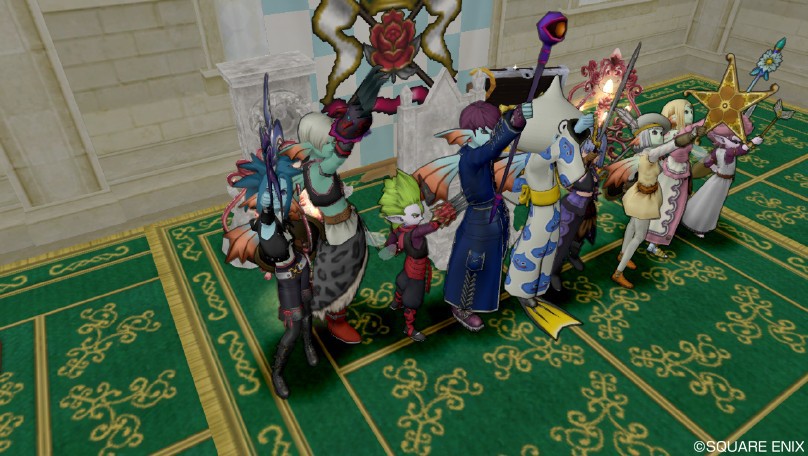 ドラゴンクエストX 超武闘伝~序~ カカロットォ・・・・・・カカロットォ・・・・・・。 超懐かしい神ゲー。 小学生のころ友達とアホみたいに対戦してました。 ドラゴンボールこそマイバイブルな私にとってストⅡとかよりもやりこんだ記憶があります。 まぁ格闘ゲームに限らずレースゲーム、シューティングゲーム、スポーツゲームなど、 信長の野望みたいな歴史シミュレーション以外のゲームはことごとく苦手な私ですが、 超武闘伝2ならまともに戦える自信があります。ハメて必殺技撃つだけですけど。 「それまともに戦えてないから」 「あとドラクエの話しようや」 デスよね。 「おっほ!」 タタミマス 時は2013年! アストルティアはコロシアムブームに包まれた!! 虎を野に放つがごとく名将、知将、豪傑が跳梁跋扈し覇を競う! 群雄たちはラッカランを目指し、夢を追い続ける。世はまさに、大コロシアム時代!! というわけで! 珍しく時事ネタなんですが! 我々『花天月地』&ディーンの愉快なフレンドたちで、 とあるコロシアムイベントに出場します! 昨日エントリー及び写真撮影もして参りました。 主催者の方は結構有名な方なのですが、 取材許可をいただくのをすっかり失念しておりましたので イベント名及び主催者名は念のため伏せておきます。 まだブログ初めて半月くらいですからね! こういうときのスマートなやり方とかわからないんですよ! 昨日も初対面だし有名な人だし、私なんか相手にされなくて けんもほろろな扱い受けたらどうしよう、 「おたくみたいな一般ピーポーはおうちでママのミルクでも飲んでな」 なんてちょっと笑える気障な台詞であしらわれてエントリーできなかったらどうしよう。 そんな不安を抱えながらもフレのレイヤ~ちゃんの作ってくれた石で、 清水の舞台から飛び降りるのもかくあらんといった心持ちで主催者宅へ飛びます。 「・・・・・・ぉじゃましまぁす」 「いらっしゃーい!!」 気さく! 常時ウェルカム体制かッ! 桂三枝ばりのいらっしゃーいで出迎えられ、 怯えきったマイチキンハートが少しだけ元気を取り戻しました。 その後、エントリーに関して手続きを進めていったのですが、 そのとき我ら花天月地のサブリーダーたちは きつつき・・・パラディンで強天魔と激闘中 サム・・・仕事から帰宅中(カイマン調べ) というまさかのサブリ不在で、 急遽チーム最強のアタッカー兼特攻隊長にして 『ボクたちワタシたち回復とかできませんから!同盟』幹事長キャシュカイと 前述のレイヤ~ちゃんを代表者代理に仕立て上げてエントリー。 と、そこに息を切らしたサミーがイン! 知らない人に囲まれてディエゴもかくやといわんばかりの過呼吸に陥りかけていた私。 これぞ天の助け。 問答無用で呼びつけます。 「事情がわからないんだが」 「いいからこい」 おそらく頭の中は?マークだらけだったサミーを見かねて レイヤ~ちゃんがPTチャットで説明。 レイヤ~ちゃんはいつもいつも面倒見のいい気が利くお姉さんで私大変助かっております。 本当にありがとう。 一方私は、主催者様とエントリー手続継続中。 「チーム名を教えてください」 え?なにそれ? 聞いてみるとエントリーPTごとにチーム名を決めてるそうです。 困った。ナニモカンガエテナイヨ。 しかしここでもたついてはイベントの準備でいろいろと大変そうな主催者様に迷惑がかかる。 ネズミの脳ほどの頭をフル回転させて0.2秒で回答したる! 「『ボケまくりシスターズ』で」 「却下」 な、なにぃぃぃぃぃッ!? 久しぶりのマイポテチハート粉砕。 あわよくば一笑い起こそうとした邪心が見え透いていたせいなのか。 それとも単純に面白くなかったのか。 いやまてよ。もしかしたら既にエントリーしているPTと名前がかぶったか? ・・・・・・ 話を伺うとチーム名が長すぎるという理由でした。 イベント進行上、チーム名が長いと司会チャットが大変ですもんね。 私もチーム主催のイベントで司会をするとき台詞が長くてゲストの皆さんを お待たせしまっていたりすると冷や汗ダラダラですのでその辺はよくわかります。 「(でもそのセンス嫌いじゃない・・・・・・!)」 「(・・・・・・ありがとう!)」 「『ボケまくり』でいかがでしょう?」 「うーん」 「『ボッケ』で」 「短ッ!」 「えっ」 短いほうがいいんじゃないのかい! という感じでチーム名「ボッケ」に決まりました。 主催者様にしっかりフォローのお言葉だけでなく代案まで出していただいたのに この傍若無人ぶり。この場を借りてお詫びいたします。 (その場で謝る勇気はなかったッ!ごめんなさい!) しかしさすが有名人。当意即妙の言葉がポンポンでてきてすごいなぁと感嘆しました。 以前某イ〇プさんともたまたまメギでお会いしたとき、 田舎者らしい気安さで話しかけた際もユーモア溢れる返しをバンバンされて驚きました。 (イ〇プさんに会えて)「興奮して鼻血でました!」 「病院に行ったほうがいい・・・・・・!!」 この話を後でサムに