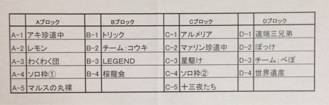 百花繚乱武闘会~開幕~ こんにちは。ディーンです。 11月23日、待ちに待ったイベントが行われました。 そう…ヌンチャク殿主催の百花繚乱武闘会、私も闘ってきました!! 思えばエントリーの日から見えない何かと闘っていたような私です。 アストルティア最強を狙えるドリームチームの結成やスベリまくったエントリー日など 今までの苦労がいま!遂に現実の成果となって現れる……! これまでのあらすじはコチラ ・ドラゴンクエストX 超武闘伝~序~ ・ドラゴンクエストX 超武闘伝~軍団~ 長くならないうちにタタミマス。 試合開始時間が刻一刻と迫る中、私の心境は 今日の職人依頼…完了! 一昨日の日替わり討伐…完了! 今日の日替わり討伐…完了! 福引クエスト巡り…完了! フフッ……やることはもうやった……。 あとはゆっくりと勝負の刻を待つのみ……。 しかしここで油断は禁物。 我がチーム『花天月地』主催イベントのときは、 チムメン及びフレさんたちが時間通り集まったことなどただの一度もありません。 自分たちのイベントだから遅れてもいい(いや、よくない)けど人様のイベントで遅刻なんて言語道断。というか、遅刻したらイベントそのものに参加できません! つーわけで、イベント開始時間の30分前である20:30集合をメンバー全員に周知しました。 これで遅くとも21時前くらいは全員着くだろう…では私も遅れないように行かねば! 全然話は変わりますが、最近うちのチームでなにかと話題な食べ物がコチラ ジーノン大絶賛の一品。 ←ほとんど毎日食べてる人。昨日も食ってました。 ジーノンがそこまで言うなら私も食べてみるか、 というか商品のキャッチフレーズに惹かれました。 『やがていのちに変わるもの』 これからまさにいのちの炎を燃やして熱き決戦の舞台に降り立とうとする私にピッタリ。 実食。 …… …… あっ。 やべ20時過ぎてんじゃん。 鍋に夢中になりすぎてた。 急いでコロシアムに向かいます。 到着。 なんとか我々ディーン一味の集合時間である20:30に間に合いました。 会場の隅で正座待機していると、チムメンのミナちゃんに発見されました。 「隅っこでなにしてるんですか?」 「精神統一してる」 「ハァ?アンタ、バッカじゃねぇーの?」的な顔のミナちゃん。 ていうか、ほぼ時間通りに全員揃いました。 なんなのなんなの。みんな人様のイベントだからってかしこまっちゃって。 やればできるなら普段のうちのイベントでも時間守ってよ! というわけで21時前後の様子。 つわものどもが大事なサムシングをかけて集います。 説明を開始するヌンチャク殿。 てかヌン殿髪切ってはる。気合入っとりますなー。 一通りの説明を終えた後、質問タイムに入ります。 私、どうしてもお尋ねしたいことがあったので、こんな大勢の前で話すのは緊張しますが 勇気を振り絞って手を挙げたいと思いま…… あっ。他の人に先越された。 その方はまだメンバーが揃ってない場合後から参加してもいいですか的な質問だったかと思います。 「ダメです。これは事前にブログに書いたルールにも載せてます」 これは手厳しい!ヌン殿もアストルティア初のコロシアムイベントを運営するにあたり、 心を鬼にして臨んでいるとみた。 質問しようと思ったけどマイポテチハートにピキピキとヒビが入っていく……。 ええいままよ! ここで聞かねば同じ悩みを持つ全参加者様が路頭に迷うことになりかねない! もしかしたらヌン殿のブログに書いてあることかもしれないけど確かなかったはず! なめんな!俺だってやってやら!じいちゃんやってやら!(コトリバコより) ディーン、いきまーす!! 「ほかに質問は!?」 「はい!」 「どうぞ!!」 「試合と試合の間に」 「うんうん」 「おしっこ休憩はありますか!?」 「ないです!」 ないのか!!大変だ!! いや、これは本当に聞いてよかった。 だって一試合終わったらおしっこしたくなるのが人情ってもんでがしょー。 特に我がボッケチームは、頻尿のきつつきに嘔吐のディエゴ、下痢便ディーンとザ・オナカイタイ同盟の三名がいますからね。 4人中3人が腹痛常連者。既にきつつきこと兄さんは説明前から腹痛を訴えており、ディエゴにいたっては「おろろ~」と吐しゃ物を口から叩き出しておりました。 あまりの緊張にチームの半数が戦闘不能寸前。 これで途中のおしっこ休憩がないとなれば、試合開始前の今しかトイレに駆け込む機はありません。 そんなこんなで質疑応答も終わり、ヌン殿から試合開幕を告げる雄叫びが発せられます。 「共に行こう!!」 オオォォォォォッ!! ウオオオー!!じいちゃんやってやら! うおおおー!ってトリックチームなんでハロウィンやねん。 というわけで遂に開幕した百花繚乱武闘会。 我らボッケチームは今のうちに兄さん、ディエゴをトイレに行かせて万全を期します。 その間、私は我々Dブロックを担当するレフリー:なるがさんの元へ。 左:レフリーなるがさん 右:変態兄さん 「今日はよろしくお願いします」 「よろしくww」 「ところでな