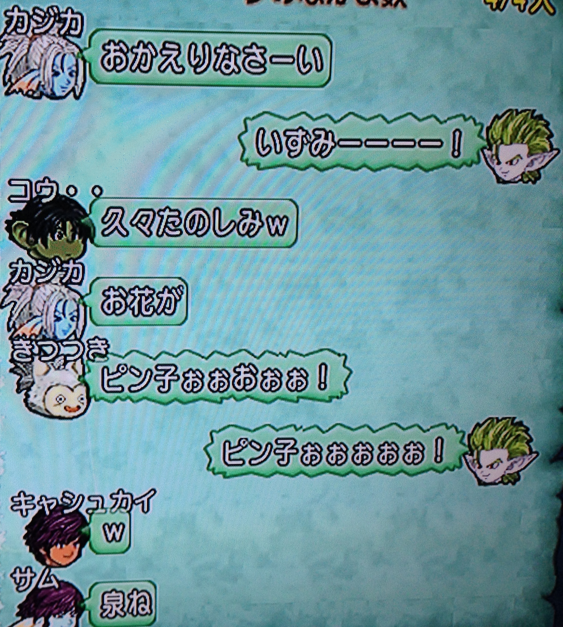 コウちゃんが遅れる中、コウちゃんの穴を埋めるためNPCと記念写真。