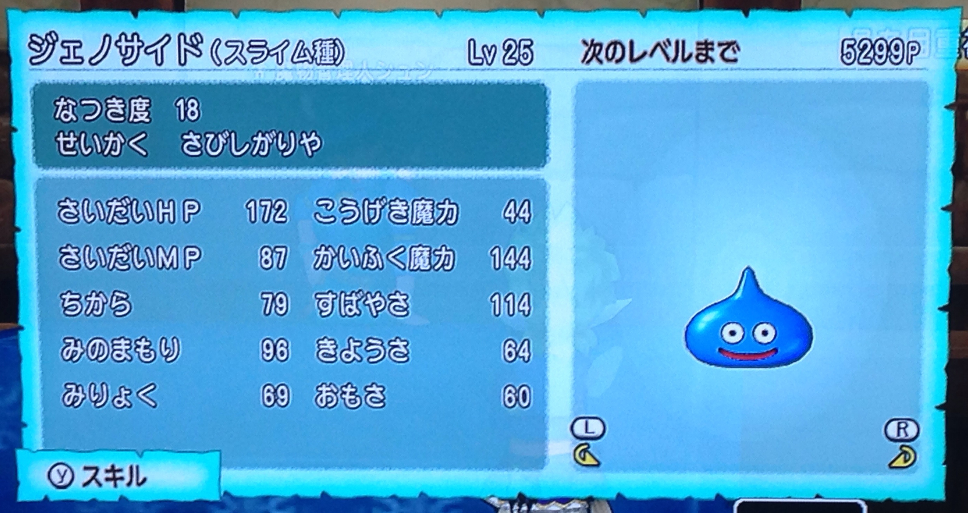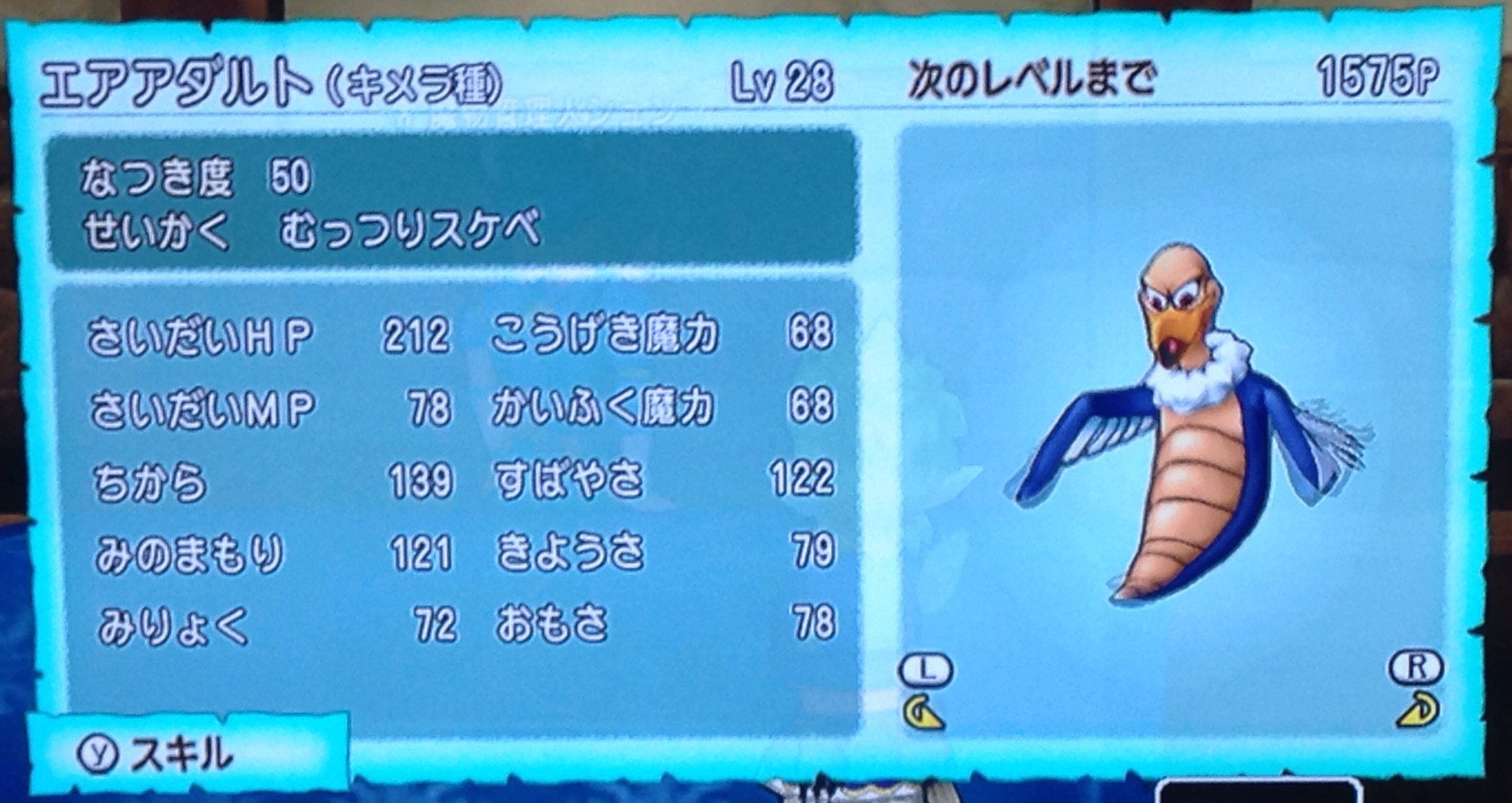 【なつき度】まものつかい育成記【上げたい】 おこんつわ! このたびトップブリーダーを目指すことにあいなりましたディーン・ウィンチェスターです! ブリーダー業界ではだいぶ出遅れた感がある私ですが 人は人、自分は自分ということで相対評価など クソくらえといった勢いで頑張らせていただきます。 今日はまものつかい&仲間モンスターの育成を 私がどのように行っているかご紹介したいと思います。 例のごとく単なる日記ですので効率がいい情報など一切期待してませんという方のみご覧ください。 たたみまっす まずは我が自慢のモンスター軍団をご紹介させてください。 仲間モンスター№1 ジェノサイド(スライム) 以前の記事(【雑記】レベル解放と魔物使い)にも登場したジェノサイドくん。 さびしがりやという生来の孤独を抱えた彼のアイデンティティを強化しようと、孤高の虐殺者として同胞のモンスターを皆殺しにする宿命を背負わせるため目論見から命名。 過去シリーズからスライム大器晩成説を信じた私でしたがそうでもないことが判明したのとサムがキメラ、きつつきがバトルレックスを自慢してきたことから我慢できなくなり放置。 いつの日か名前に負けない最強最悪のスライムとして世に出る日を夢見ていることでしょう。 仲間モンスター№2 スターダスト(リザードマン) バトルレックスが強いと聞いた私はそれならリザードマンも強いのではなかろうかという至極安易である意味妥協ともとれる判断から彼を仲間にしました。 結構スカウトが成功しなくて苦労した記憶があります。 せけんしらずという性格から少し私と似た厨2感覚の持ち主であることが察せられたため私のセンスまるだしな名前をつけさせていただきました。 育てようとはしたものの思いのほか役に立ちそうになかったので放置。 仲間モンスター№3 メフィスト(ねこまどう) ねこまどうの攻撃魔力が1000を超えるという情報を聞いていてもたってもいられずにレーナムでスカウトしてきた彼。 一匹狼という我が軍団最高の厨2病患者であることからファウストでおなじみの悪魔メフィストフェレスの名前を頂戴したお猫様。 バザックスなどで大活躍してもらうつもりでしたがサムの「キメラマジ便利」発言がずっと心のどこかでひっかかっていた私の衝動によりモンスター酒場へ放置。 キメラ育成後は彼を中心に育成していきたいと思っています。 仲間モンスター№4 エアアダルト(キメラ) ルーラ石が1個増えるというどうしようもない欲望のために欲望渦巻くカジノを経て我が軍団に加入した超新星。まさかのむっつりスケベな性格からなんとなく名は体を表す的な感覚で命名。 ルーラ係としてその能力を期待されていた彼でしたが、回復役にも武闘派にもなれるらしいとのことで現在絶賛育成中。 今から成長が楽しみです。 バージョン2初期はまものつかいのレベルは上げすぎない方がいいという噂がまことしやかに流れていましたが、先日りっきーDのコメントにより自分や仲間モンスターのレベルは関係なく、敵モンスターそのものの強さでなつきやすさが決まると判明しました。 実はこれ、私が知ったのはつい最近でそれまで本当にいろいろな場所を思考錯誤して育成しておりました。 そんな私がまぁここいいんじゃないと思ったのは、みんな大好きタコメットさんや我がチーム最強のアタッカーにしてキュララナ海岸の主・キャシュカイお勧めのいわとびあくま。 キャスはこのいわとびあくまを通算13000匹狩ったそうです。 もはやアストルティアのペンギンハンターといっても過言ではない。 ペンギン(『バットマンリターンズ』より) ※特に関係はありません。私がバットマンが好きなだけです。 キャスに教わっていわとびあくまでエアアダルトのなつき度を上げていました。 大体30分で8前後程度のなつき度上昇する感じ。 なつき度10→25くらいまでキュララナで上げていました。 昔はタコメットでレベル上げしたよって方はかなり多いかと思いますが、混雑した狩り場が苦手な私は昔も落葉でまだらイチョウを狩っておりました。 現在、特に支障はないとはいえキュララナはやはり多少混んでいるのでモンスターの取り合いが苦手な私向きの狩り場ではないような気がしてきました。 そこで着目したのがこのモンスター フォンデュinコニウェア平原 レベル57以上で格下 通常ドロップ:ふしぎなドロドロ レアドロップ:せいれいせき 大した強さではありませんが、基本単体出現なのとそれなりのモンスターレベルを有していることからチョイス。 レンダーシアの奥へ奥へと突き進んでいる冒険者が大多数の現在、ココラタの浜辺は空きまくっているというのがなによりの着目理由。 赤い変態こと私の盟友アキちゃんもオススメしておりました。 浜辺に生息しているわかめ王子の方はフォンデュより若干格下ですがフォンデュの合間にちょこちょこ当たると切れ目なく戦闘が続くのでなかなかグッドです。 とりあえず実戦 