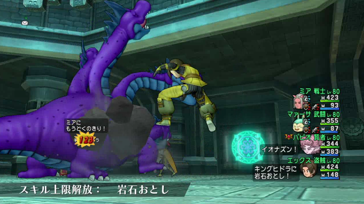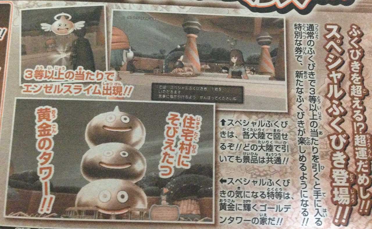 【速報】120スキル開放&スペシャルふくびき【と余談】 こんばんは!ディーンです。 今週は全然インできませんでしたので今夜は徹夜の勢いでたまった討伐やら職人依頼を片付ける! あぁ……でも明日朝イチで用事が……。 ええい! 気合だ気合だ気合だー! つーわけで今回はネタバレ情報編なのでサクっとたたみます。 ネタバレOKの方のみ続きをご覧ください。 てなわけで早売りザンプ情報! ドドドーンとご紹介していきます。 2.0のシナリオをクリアしてちょこっとしか進んでいない私にとって、ハッキリ言って謎の人物ですが、このメガネがスキル上限を開放してくれるそうですね。 とりあえずシナリオ進行的には2.0をクリアしていればいいようなので個人的にはちょっと安心しました。 2.0をまだクリアしていないの方で120スキルを楽しみにされている方は急いでシナリオを進める必要がありそうです……! せっかくなのでこちらも2.1PVからひっぱってきました。 現状発表されている120スキル 片手剣……超はやぶさ斬り【確定】 両手剣……ビッグバン【確定】 格闘……岩石おとし【確定】 両手杖……超暴走魔法陣【確定】 しんり?……イオグランデ【130スキルの可能性も】 超はやぶさ斬りについては今回の画像で約400ほどのダメージを与えていますので消費MP的に問題なければ発動の速さも含めタイガークロー以上の強スキルになりそうです。逆に現状のオノ系特技と同様の消費MPだった場合そこまで使うほどの強さではないように感じるかもしれません。そう考えると超はやぶさの個性を生かすために消費MP5~7くらいではないかと予想します。 ビッグバンはド派手なモーションに期待できそうですが、バトマスの両手剣Ver天下無双に比べてどこまで威力が発揮できるか気になるところ。消費MPは大目、発動速度は中くらいの印象。 岩石おとしはどうなんでしょうねぇ、調整が入るでしょうからそのまま考えることはできませんがとりあえず画像で出ているのはキングヒドラに123のダメージですから発動速度は問題なさそうですが強い技とはとても思えません。防御耐性無視のオオカミアタックと同じような技のにおいがしますね。正直これのために格闘スキルを極めようという人が多数出るとはあまり思えない感じ。花天のレンジャー代表ドッポくんが常々「オオカミアタックはダメージを向上させてください!無理ならモーションっていうか演出をもっと派手にしてください!お願いします!」って叫んでいますが格闘スキルファンの方も同じような叫びを口にする日も近いかもしれません……。 超暴走魔法陣は単純に暴走率がハンパない魔法陣ってことでいいんでしょうか。それとも暴走に加えた新たな特性がある魔法陣なのでしょうか。魔法使いにとって、呪文ごとに決められたダメージキャップと攻撃魔力とダメージ向上の比率計算及び呪文耐性による数秒間ダメージ減少の3点から大ダメージを出したければ高い攻撃魔力よりも呪文暴走に賭けるしかない歯がゆい現状を打破する特技になってくれるのでしょうか。そもそも前述の呪文耐性や暴走しても補助呪文が成功しないなど一連の魔法使い弱体化政策で行われた調整を撤廃してほしいと思っているのは私だけではないはず。ここまで前衛職が強化された今日、最強の攻撃職にしろとは言いませんが、魔法にもう少し光を当ててくれてもいいんではないでしょうか。また道具使いの必殺に比べてどこまで有効かも気になります。 イオグランデはPVのみで確認されているスキルですね。120かもしれないし130かもしれません。ただ私がしんりスキルであると予想したのは以下の画像から使い手の職業が賢者であることが推察できるからです。 確定ではありませんが、PVで超はやぶさ斬りをしていたのが戦士のミアちゃん、岩石おとしをしていたのが盗賊のエックスくん、そしてイオグランデをしていたのは賢者のパピオくんだと思います。 ということでしんりスキルにイオグランデだと思うのですが、そもそも呪文がスキルってどうなのかなぁと思いますし、超暴走魔法陣のところで述べたようにダメージキャップや攻撃魔力のダメージ計算、呪文耐性、さらに当然予想されるイオナズンを超える大量の消費MPなどの要素からどこまで実用的なものになるか少し疑問です。 とまぁ、魔法系について若干ネガティバーな気持ちの私ですが、スキル開放に伴い大幅な調整を行うと明言されていますし、今まで大いに楽しませてくれた運営さんの力を信じていますので、スキル開放によってさらにドラクエ10が盛り上がることを期待しています!! でも私が一番期待しているものといえばコチラ。 スペシャルふくびき実装!! 黄金のタワーなんて書いてあるけどカラーじゃないから最初メタルブラザーズかと思いました。 通常のふくびきで3等以上を当てるとエンゼルスライムが出現してスペシャル福引券をもらえる……という内容でしょうか。さらに福引していた本人だけでなく、周りにもおす